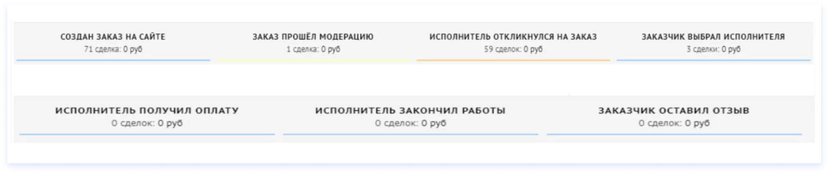 Для всех возможных вариантов событий от квалификации лида до апсейла