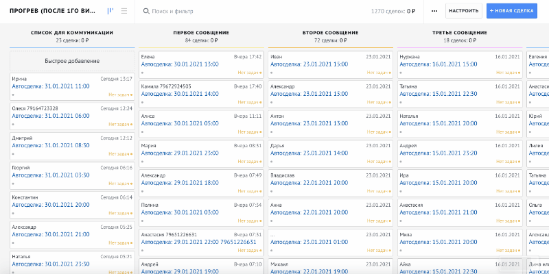 все задачи ставятся менеджеру автоматически, по триггеру — забыть о них не получится, а напоминания клиентам шлёт чат-бот.